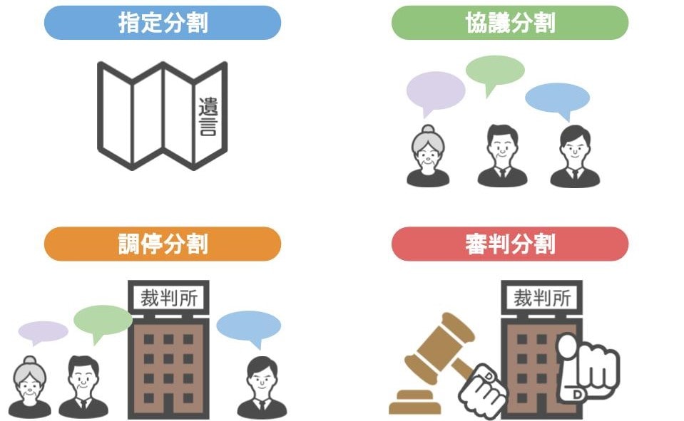 まず、遺産分割の方法には大きく分けて4つのパターンがあります。