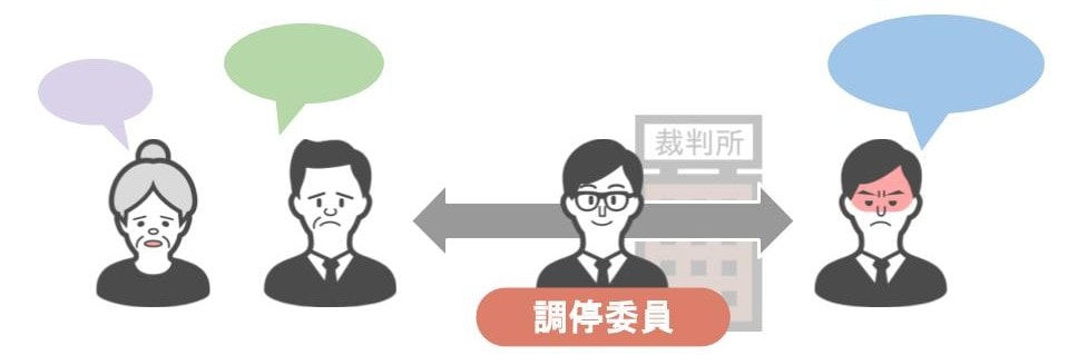 - 家庭裁判所で、調停委員を間に挟んで協議を行い、