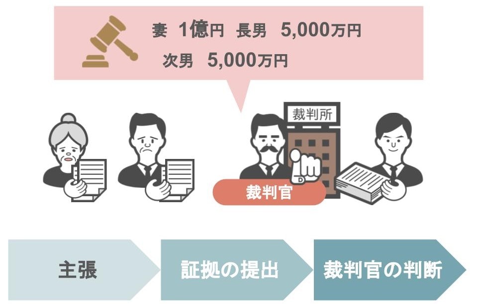 - 相続人それぞれが自分の主張と、その根拠になっている証拠を出して
