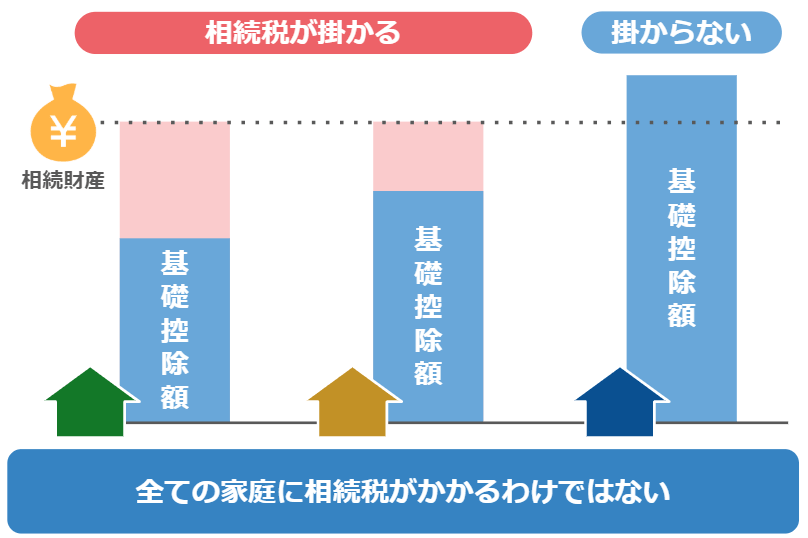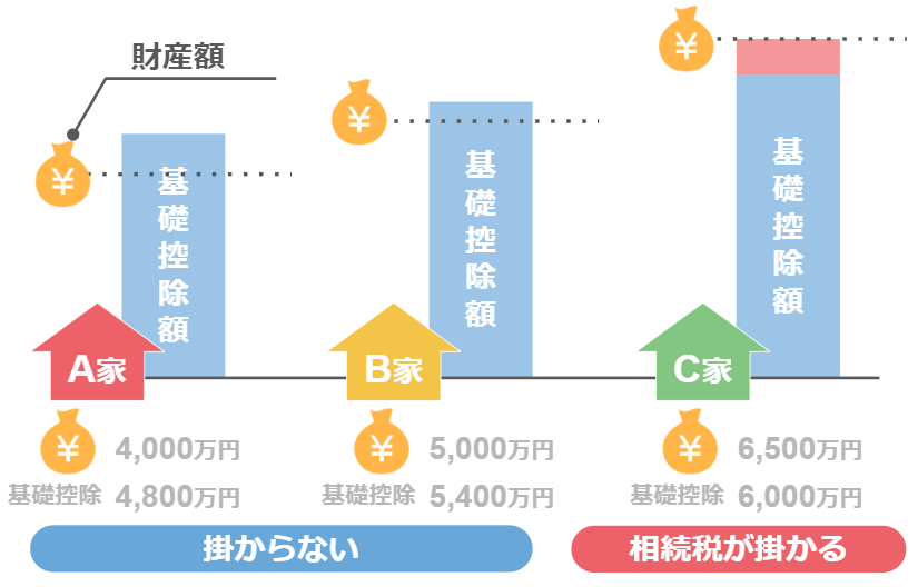 ですが、基礎控除額というのは各家庭によって金額が違うので、財産額が同じでも〝相続税が掛かるかどうか〟というのは各家庭によってバラバラです。