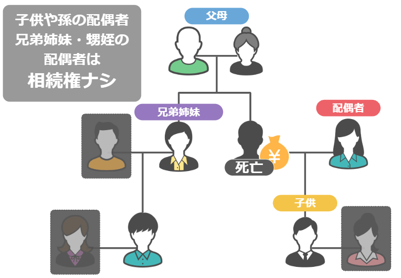 - 子供や孫の配偶者、兄弟姉妹の配偶者、甥姪の配偶者: