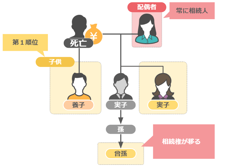 孫が無くなっていれば:曾孫に相続権が移ります。