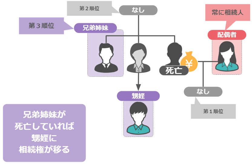 兄弟姉妹もなくなっていれば:その子供である甥姪に相続権が移ります。