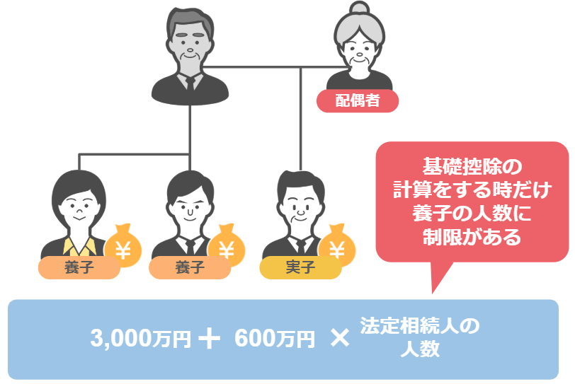 - 基礎控除の計算をする過程においては、法定相続人に含める事ができる養子の数には上限があるのです。