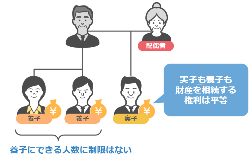 - 財産を相続する権利というのは、実子にも養子にも平等にあるのですが、