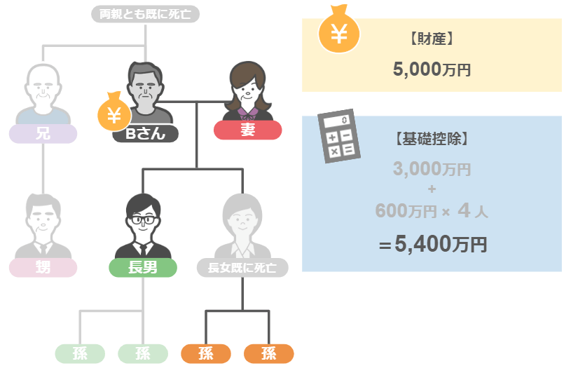 そして基礎控除は3,000万円+600万円×4人=5,400万円です。