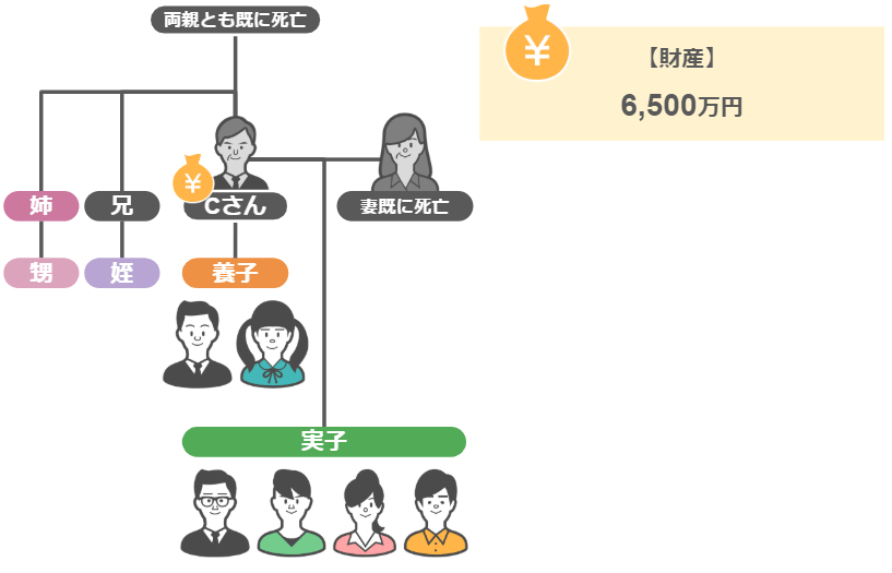 亡くなったCさんは下図のような財産・家族構成です。