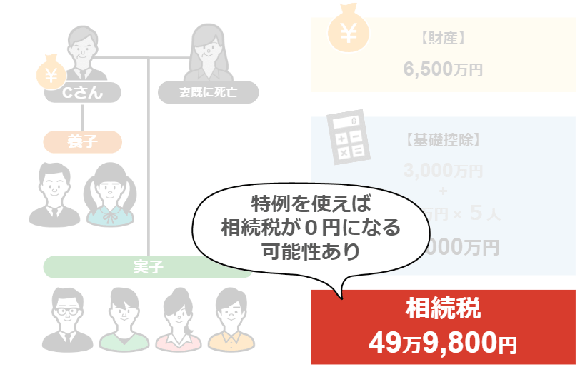 また、Cさんの場合、財産額が基礎控除を超えているので相続税が掛かってしまう訳ですが、
