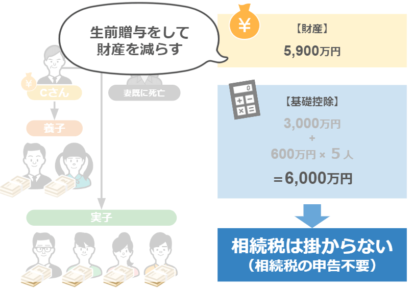 - 生前贈与をすることで財産を基礎控除以下まで下げる事も出来ます。