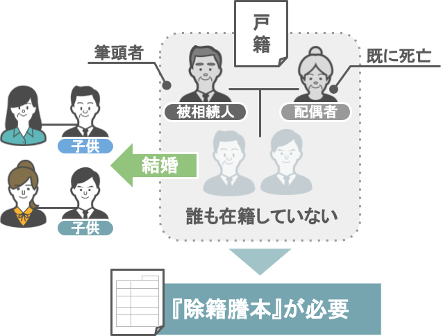 - 亡くなった方が既に配偶者を亡くされており、子供達も結婚して戸籍を抜け、