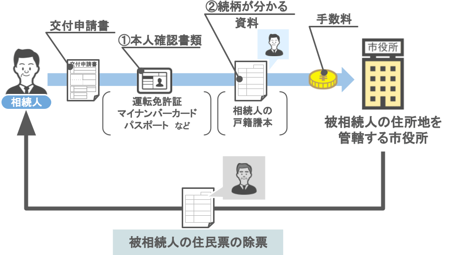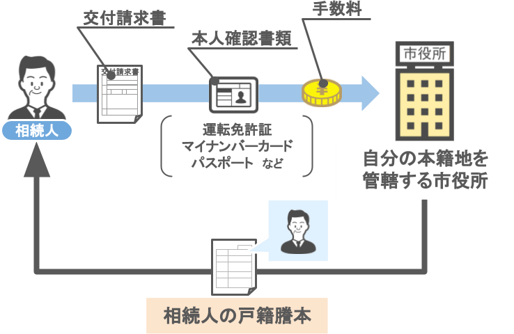 (※被相続人と同じ戸籍に在籍している方は、死亡届提出後、10日以上経過してから『戸籍謄本』の交付請求をしてください。)