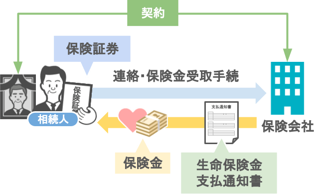 - 亡くなった方が契約をしていた保険会社に相続が発生した旨の連絡を入れ、