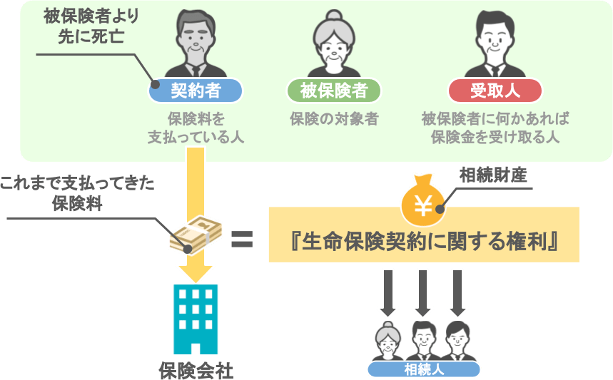 - 被保険者の〝死亡〟を原因として支給される相続財産ではなく、