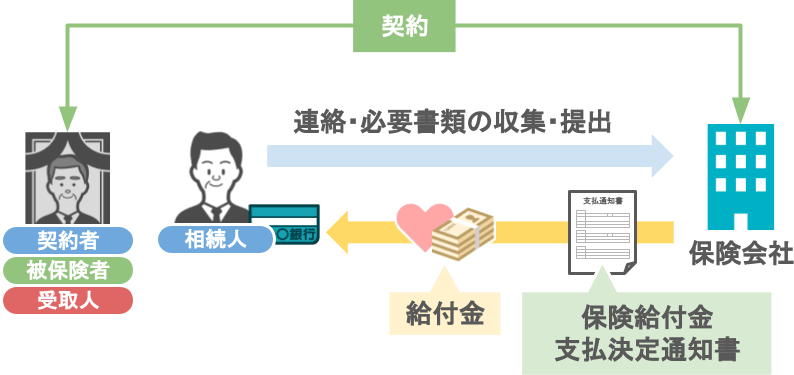 - 後日受取人の自宅に『保険給付金支給決定通知書』が届きます。