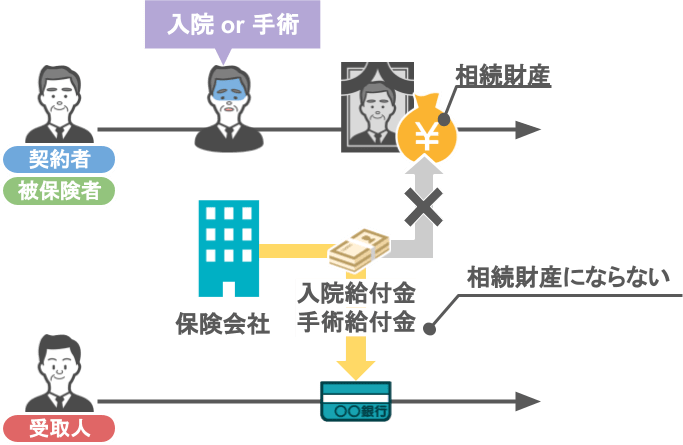 - 被保険者の〝入院・手術〟によって保険金が支払われる『受取人固有の財産』だからです。
