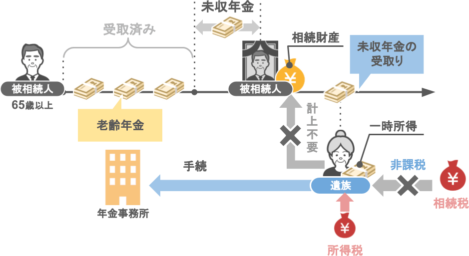 - 同一生計の遺族が、被相続人の年金の未収部分を請求することにより、