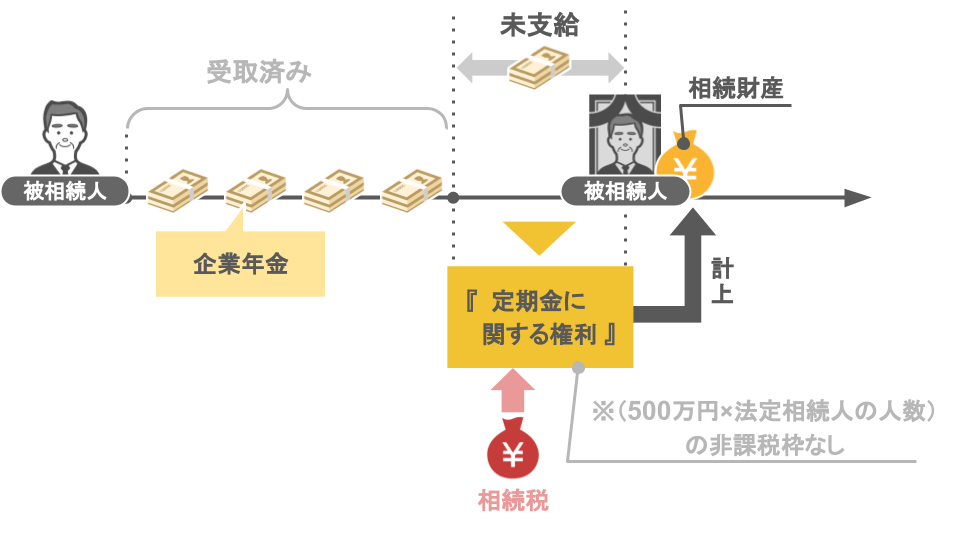 『未支給の企業年金』は『死亡退職金』として支払われ、相続税の対象になります。