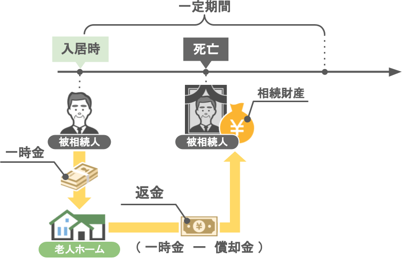 - 支払った『入居一時金』から償却金を控除した残額が、老人ホームから返金されます。