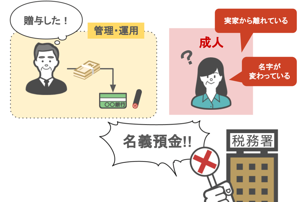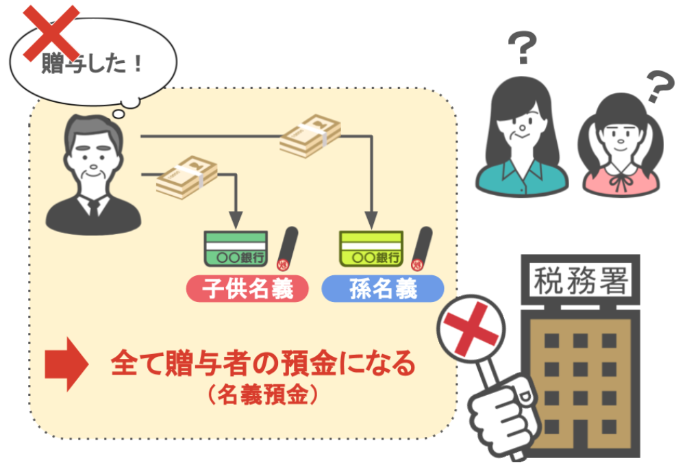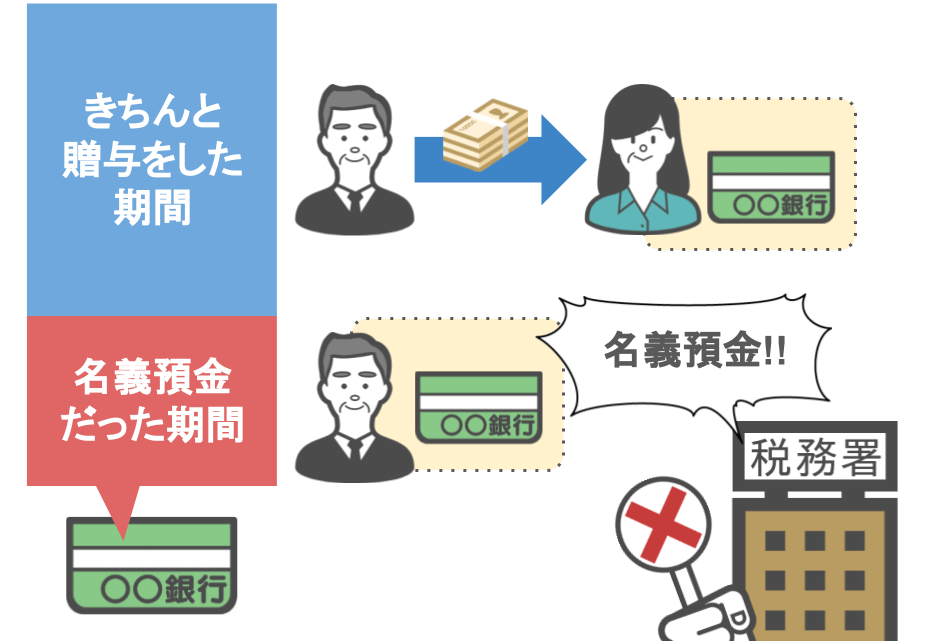 キチンとした手順を踏まずに贈与や預金を行ってしまうと、それが知らず知らずの内に名義預金に該当してしまいます。