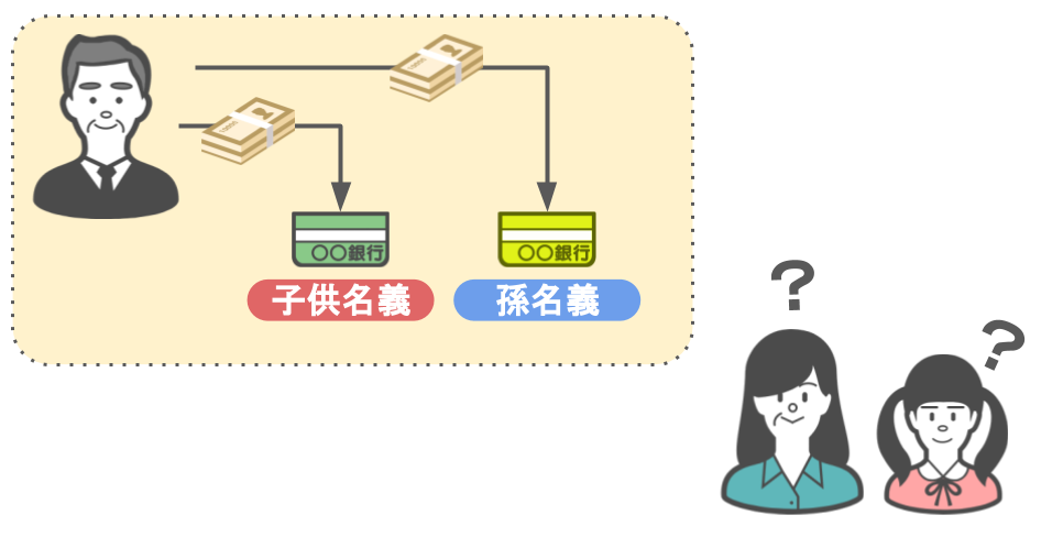 ❷ 親が基礎控除の範囲内(110万円)で子供や孫名義の口座に預金をしている