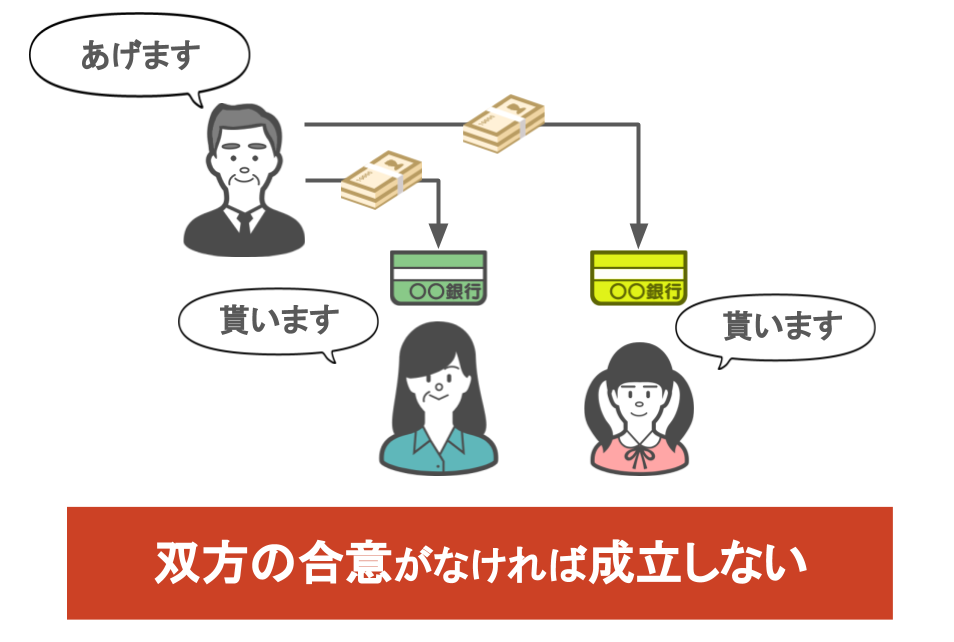 「贈与をします」「はい、贈与を受けます」という、双方の合意の元で行われるものです。