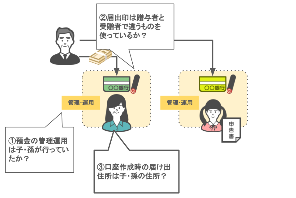 受贈者である子・孫が『自分で贈与税の申告を行っているか』という実態によって、
