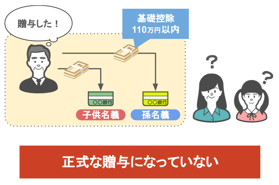 2つ目のケースは【親が基礎控除の範囲内(110万円)で子供や孫名義の口座に預金をしている】というものです。