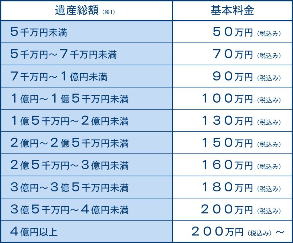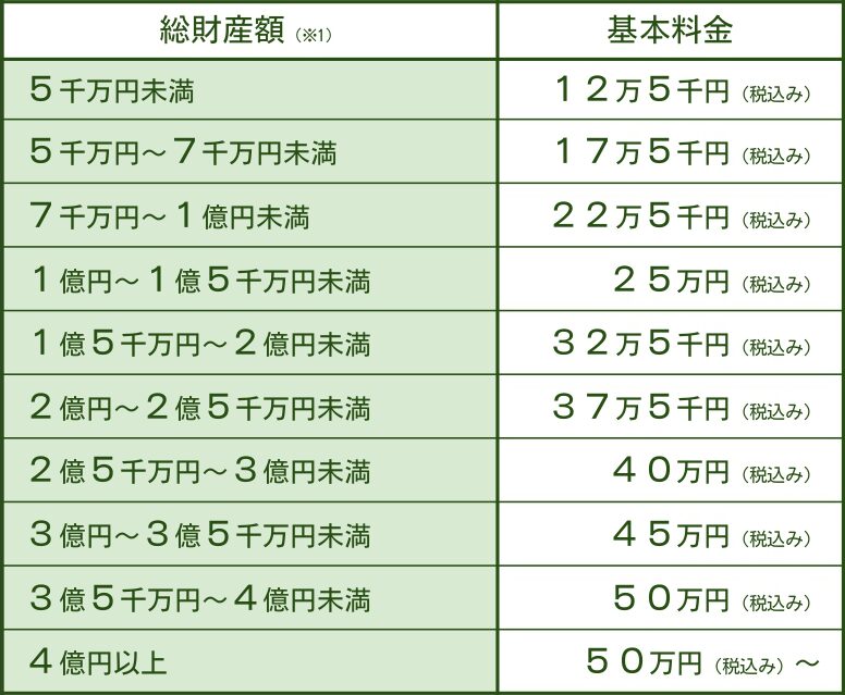 (例:100万円相当額の財産の場合『修正申告書作成報酬』は5万円となります)