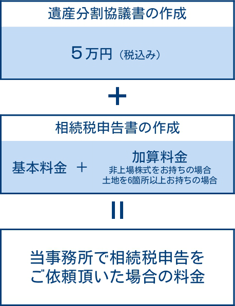 当事務所で相続税の申告書作成をご依頼頂いた場合の料金形態は、下図のようになっております。