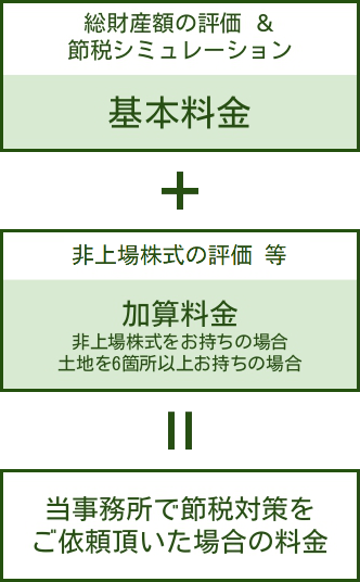 当事務所で相続税の節税対策をご依頼頂いた場合の料金形態は、下図のようになっております。