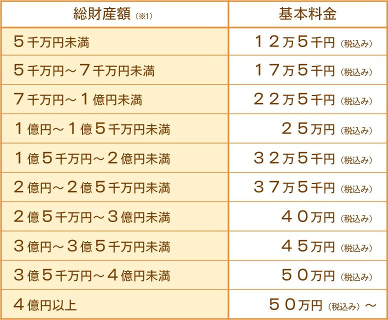 ※1 基本料金の指標となる総財産額は、ご夫婦の内、総財産額が多い方を基準とします