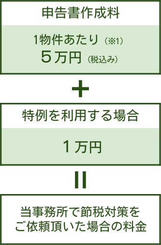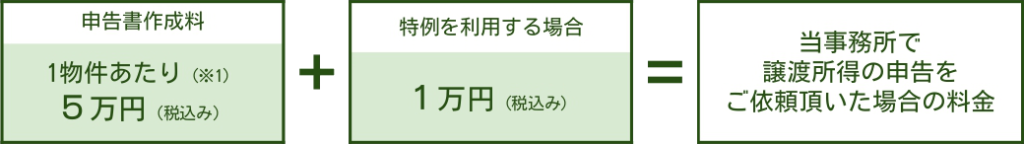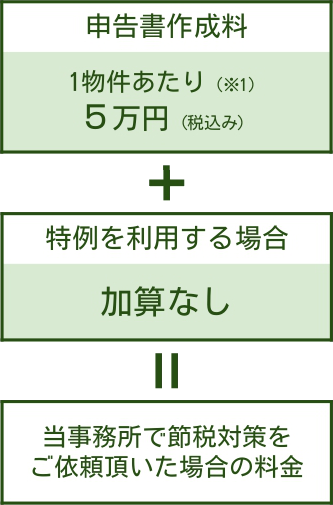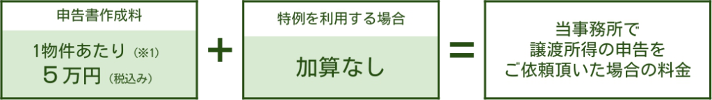 当事務所で不動産の譲渡所得税申告をご依頼頂いた場合の料金形態は、下図のようになっております。