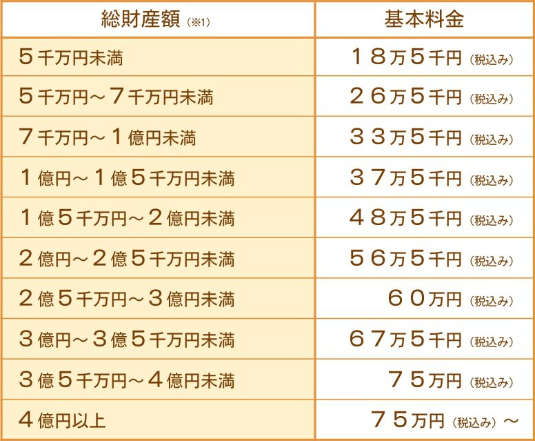 ※1 基本料金の指標となる総財産額は、ご夫婦の内、総財産額が多い方を基準とします。