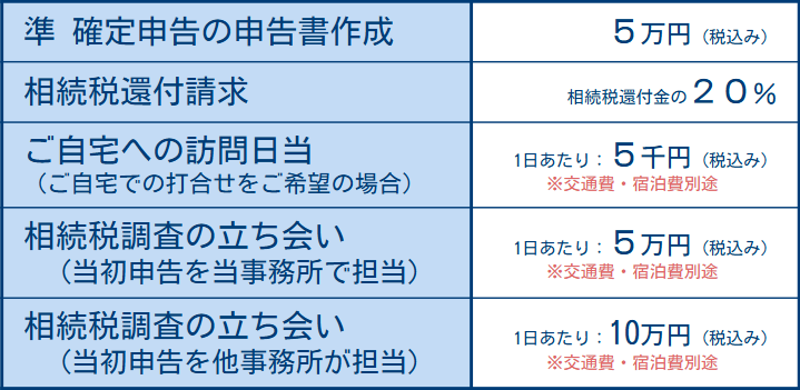 (例:100万円相当額の財産の場合『修正申告書作成報酬』は5万円となります)